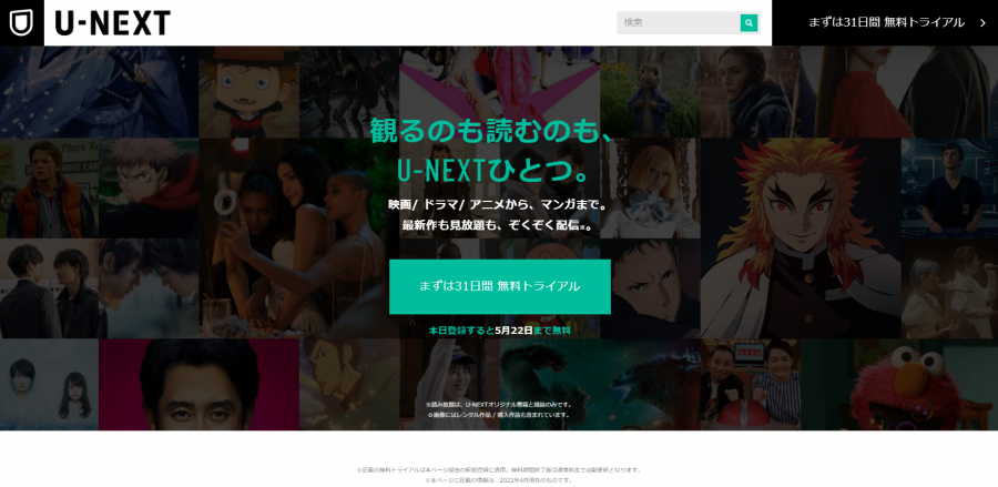 配信作品数は18万本で、競合と比較しても多いサービスです。特に韓国・華流ドラマが充実しています。その他にもここでしか観られない独占配信作品が多数。音楽系も豊富で、YOASOBIやVaundyなど人気アーティストのライブ動画の無料配信もされています。※2023年4月11日23時59分の時点でdTV会員の方は、2023年9月30日まで月額550円(税込)のまま利用できます。