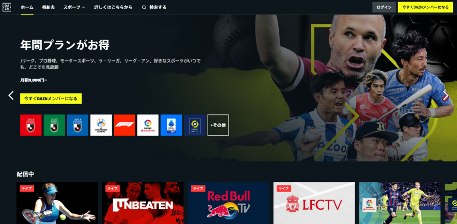 国内だけでなく海外の試合も生配信されているほか、見逃し配信にも対応。時差の関係でリアルタイムでの視聴が難しい場合でも、問題なくスポーツ観戦を楽しめます。