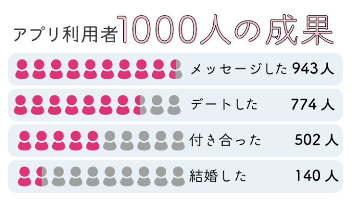 - 引用:婚活アプリ(マッチングアプリ)で恋人ができた人は何が違う?経験者1000人にアンケート調査