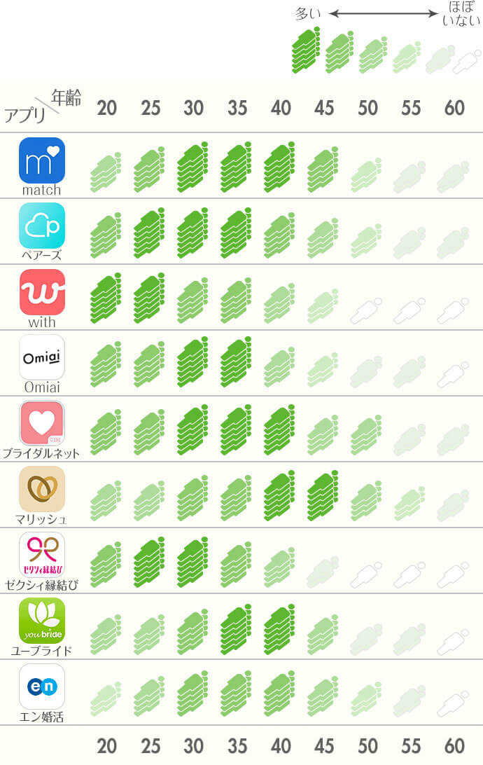 他の婚活アプリでは20代〜30代の利用率が高いため、40代〜50代の利用率が高いアプリはなかなかありません。