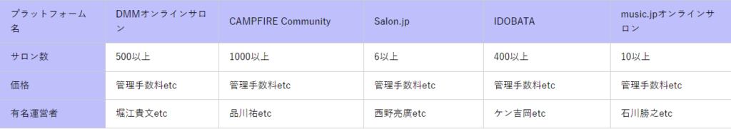 そこでここからは、オンラインサロン運営ができるプラットフォームを5社紹介していきます。
