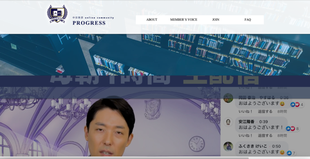 PROGRESSというオンラインサロンは中田敦彦さんの思いや考え方に共感する人たちのコミュニティなので、同じ思考や同じ興味をもった方と出会える1番のメリットがあります。
